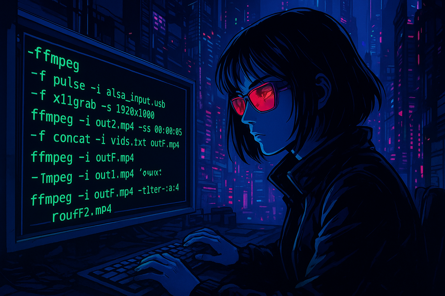 cyberpunk wizardry.Sure, it’s not “normal.” But if you enjoy the command line and want a lightweight, minimalist approach to editing, ffmpeg can handle it all: recording, cutting, concatenating, and even audio fixes.