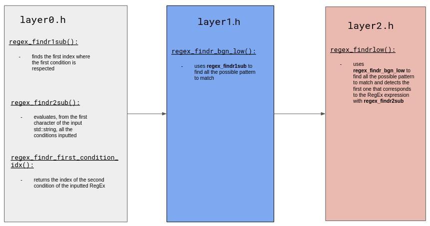 A function is in charge to detect the first index in the character where a pattern to match could be located.